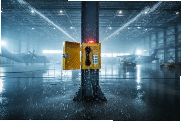 Industrial fire suppression often involves deluge systems or high-pressure sprinklers that turn a facility into a car wash in seconds. Standard communication gear fails instantly under this assault, severing the lifeline just when coordination is most critical. Whether in aircraft hangars, chemical storage, or offshore modules, the communication system must survive the "cure" as well as the hazard.