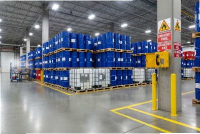 A fuel warehouse looks clean until a carton leaks. Vapors can build in aisles, sprinklers