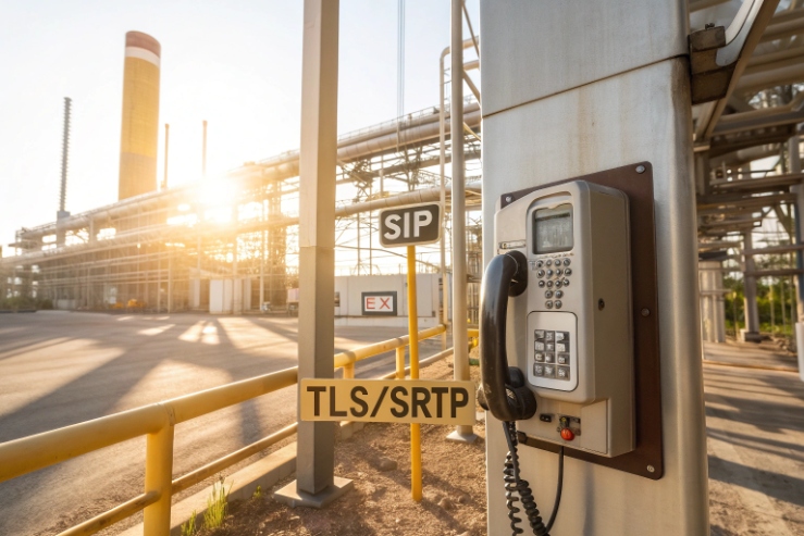 Unsecured SIP is still common in harsh sites. One misconfigured switch or a tapped cabinet can expose call control and keys, even when the phone enclosure is certified Ex.