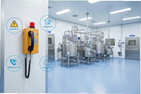 A hygienic Ex phone is a system. The enclosure, keypad, glands, and labels must all survive cleaning. A supplier that only talks about Ex marking but cannot talk about disinfectants is not ready for pharma workshops.