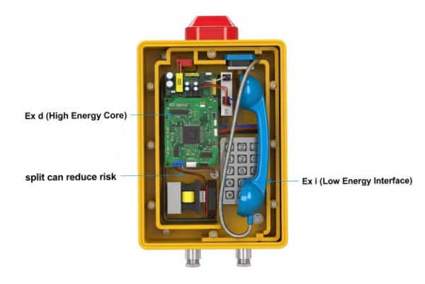 | Ex d + Ex i | High-energy core + safer external interfaces | Needs strict segregation and clear documentation | SIP phones with accessory ports, alarms, or replaceable handsets |