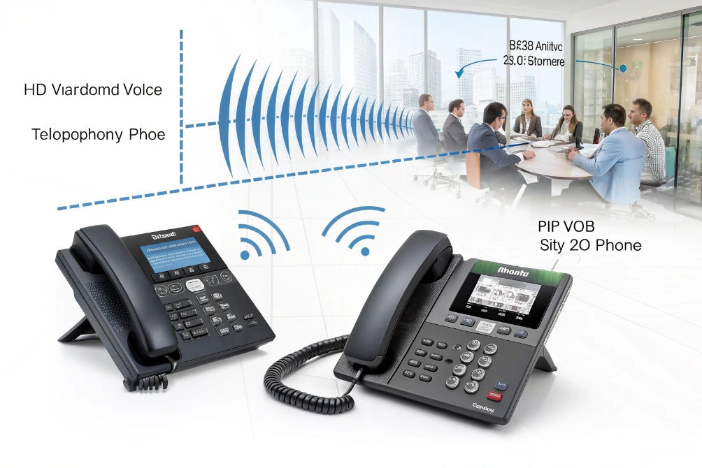 HD VoIP desk phones demonstrating wideband audio for business conference call