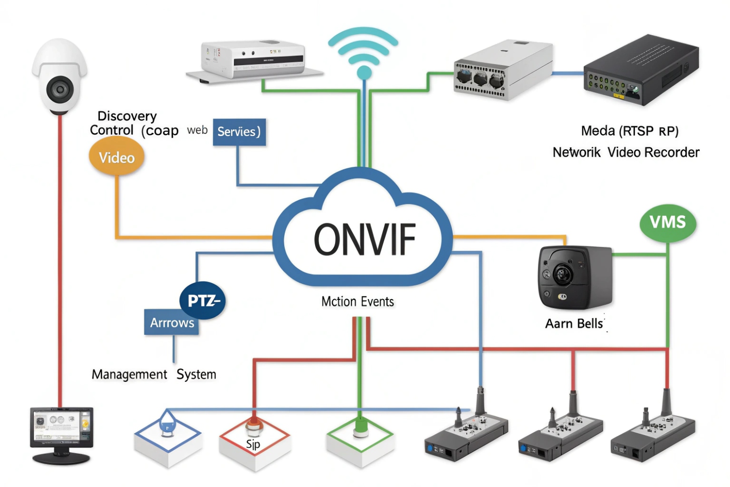 ONVIF is the interoperability layer for discovery, control, streaming, and events. Profile matching, VLAN-aware design, and clean encoder/event settings create stable video across NVRs, VMS, and SIP intercom ecosystems.