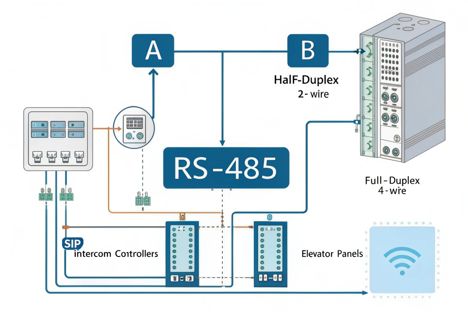 In many deployments, RS-485 becomes the “control backbone” while SIP carries voice and video over IP. That split keeps audio modern and control wiring tough.