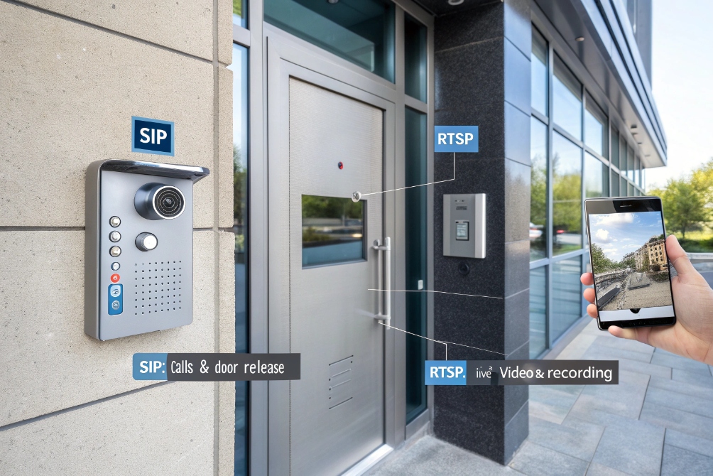 In a SIP intercom project, Real Time Streaming Protocol (RTSP) (RFC 2326) 1 becomes the bridge between “door camera” and the rest of the security ecosystem. SIP handles calls and door release; RTSP feeds live and recorded video to security desks, mobile clients, and compliance storage.