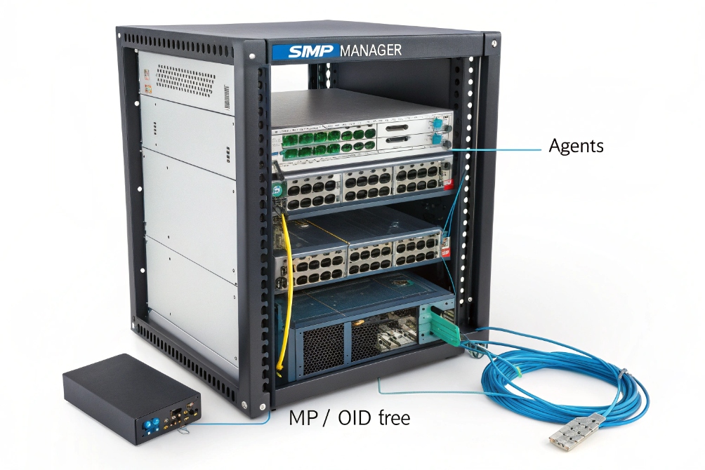 SNMP is not magic. It is just a standard way for devices to expose counters and states through a structured database called a MIB, indexed by Object Identifiers (OIDs). For the core protocol definition, read the Simple Network Management Protocol (RFC 1157) 2. Once a network has SNMP agents enabled, a monitoring system can poll them on UDP port 161 and receive traps on port 162 when something important changes. For voice, this means you can see jitter proxies, drops, PoE draw, phone registration status, and link problems before users start complaining about one-way audio or dead handsets.